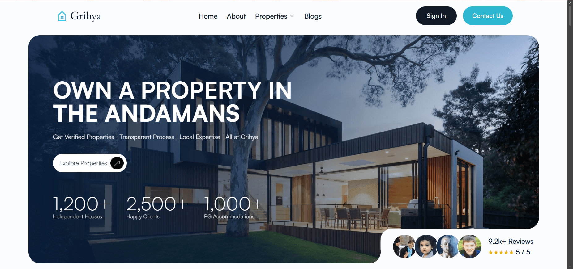 Grihya Estate now has a professional digital platform that positions Andaman real estate as a premium, trustworthy market — replacing the fragmented broker ecosystem with a structured, self-service browsing experience. The CMS architecture means Shubham can scale from 10 to 1,000 listings without needing a developer for each addition.
