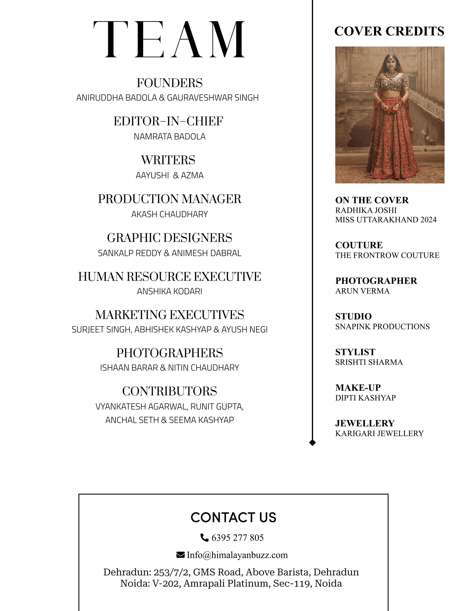 This project highlights how editorial design can transform brand perception. By channeling the sophistication of global fashion magazines, the Wedding Edition not only showcased Himalayan Buzz’s content but also established the brand as a serious player in the luxury wedding and lifestyle publishing space.